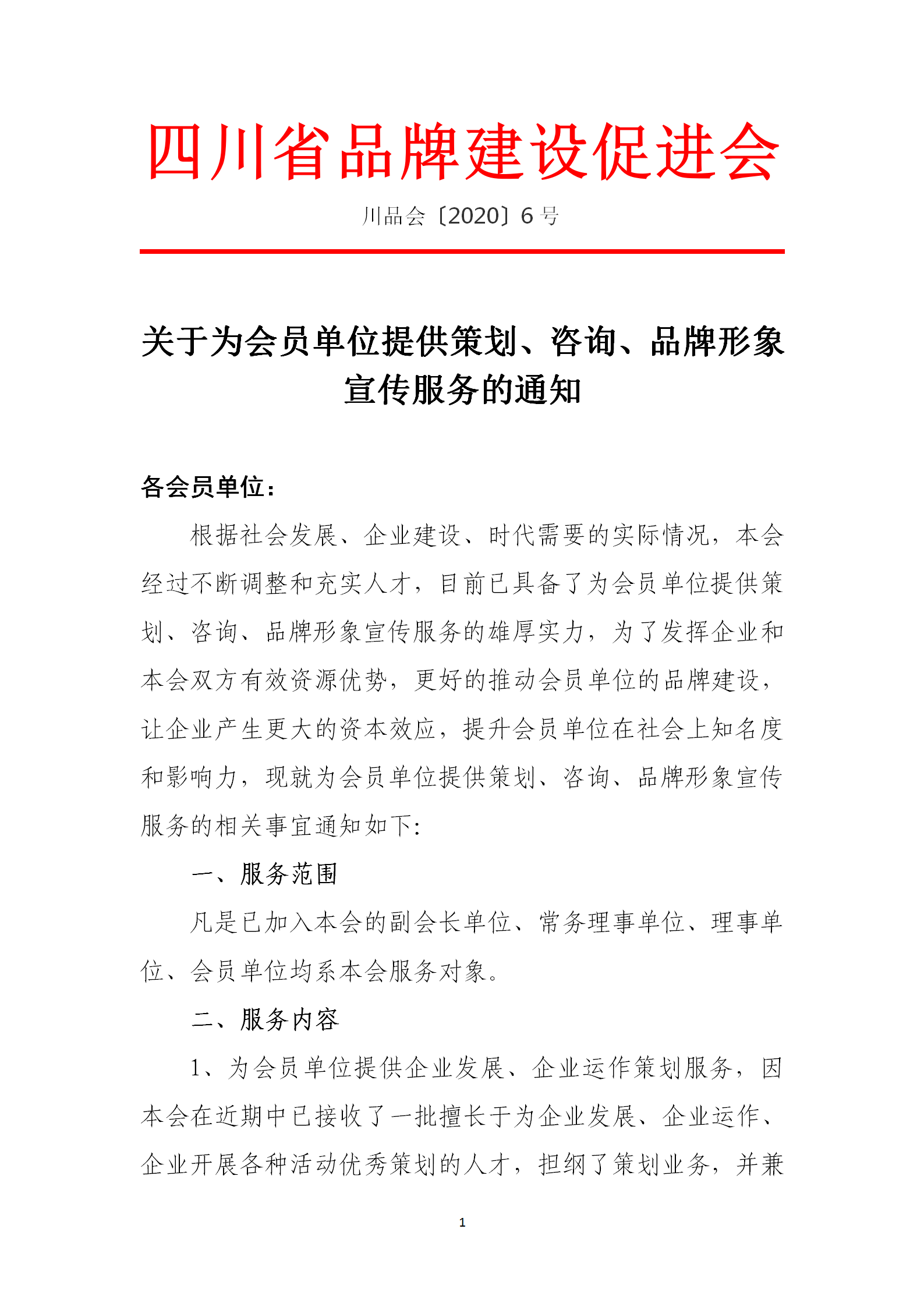 关于为会员单位提供策划、咨询、品牌形象宣传服务的通知