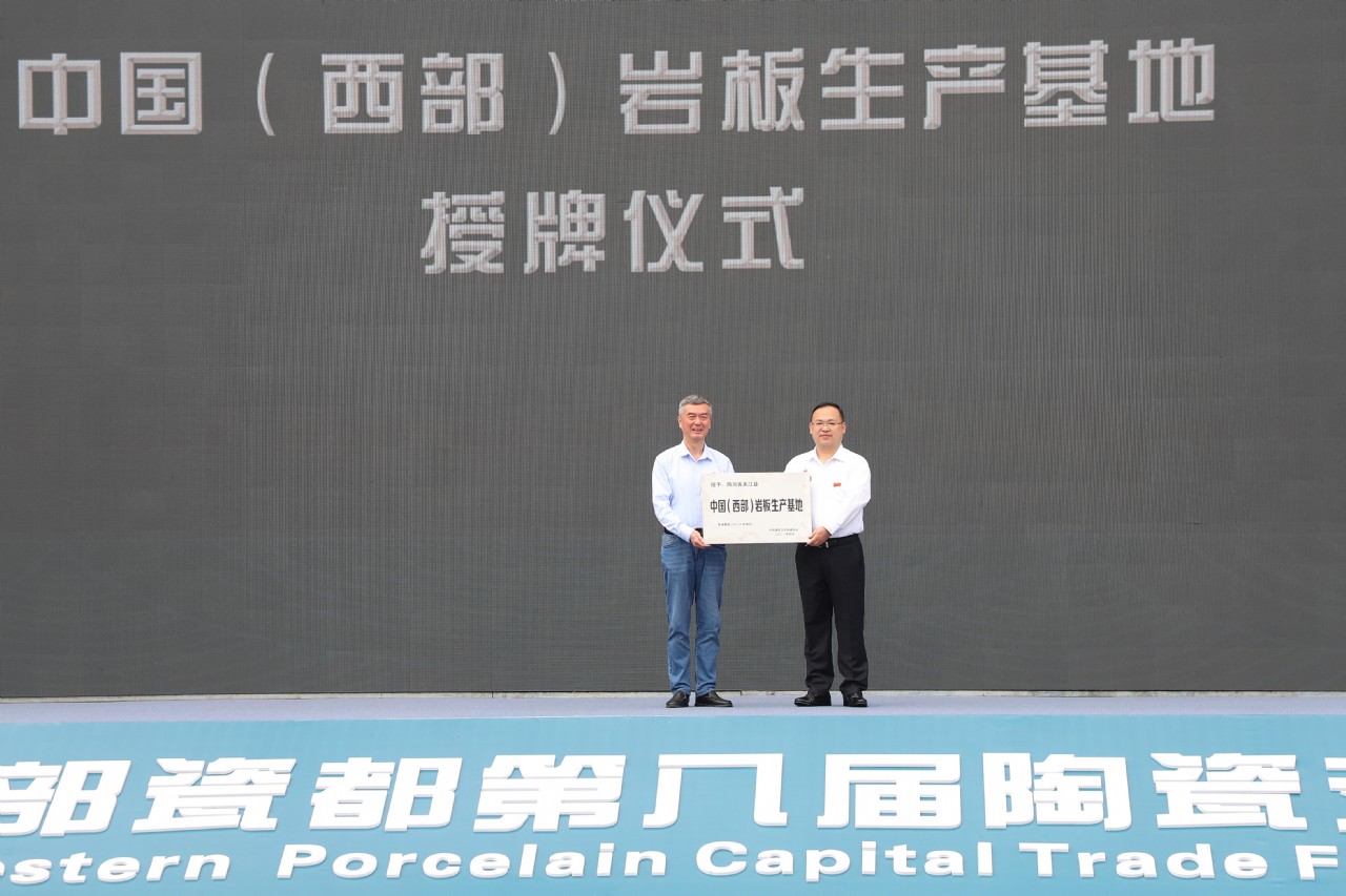 会上,夹江县被中国建筑卫生陶瓷协会授予“中国(西部)岩板生产基地”称号。